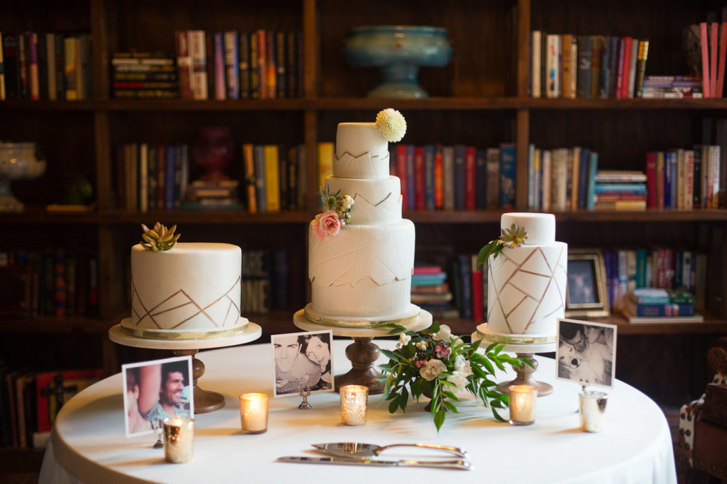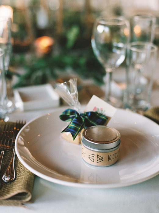 Samantha Collie and Joshua Beatty met when their friend groups merged on a night out. After spending six years together, they made it official on October 9, 2015, in a laid-back, backyard-inspired wedding. A bagpipe player and a traditional quaich ceremony honored the bride’s Scottish heritage, while her hexagonal diamond engagement ring set the tone for the decor—geometric angles and metallic touches were found in the terrarium centerpieces and gilded cake design.