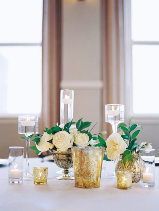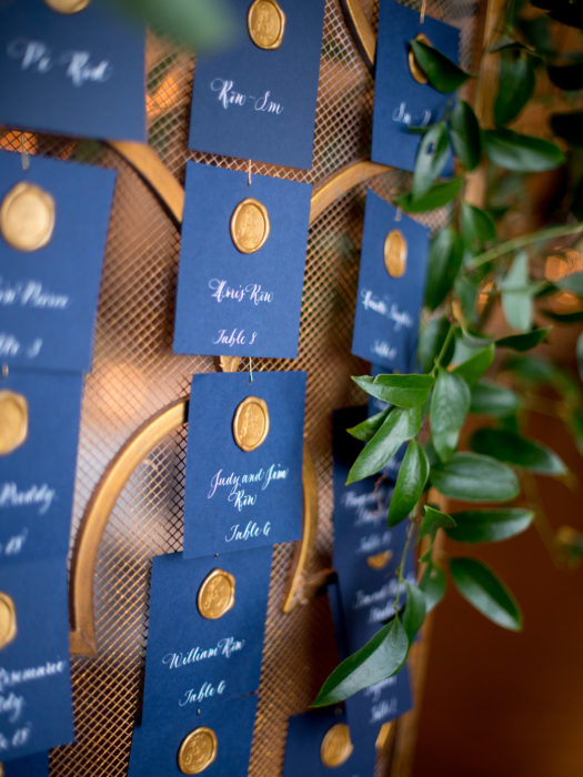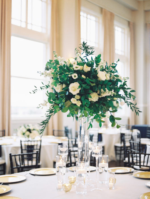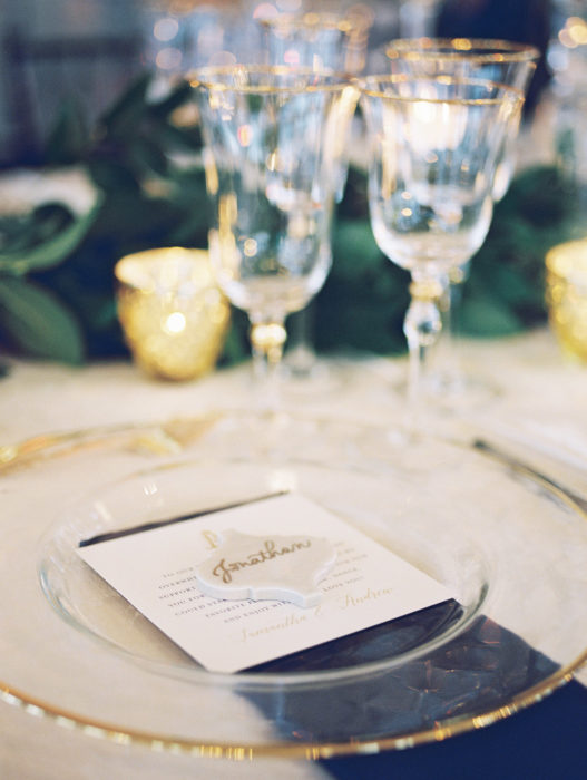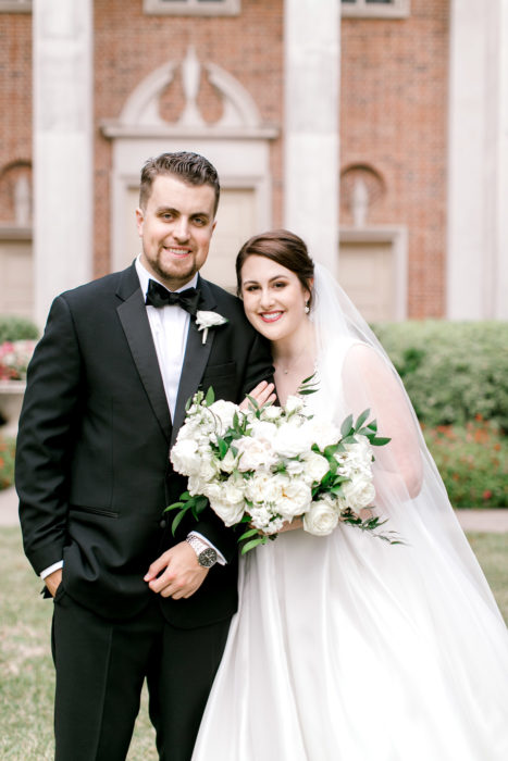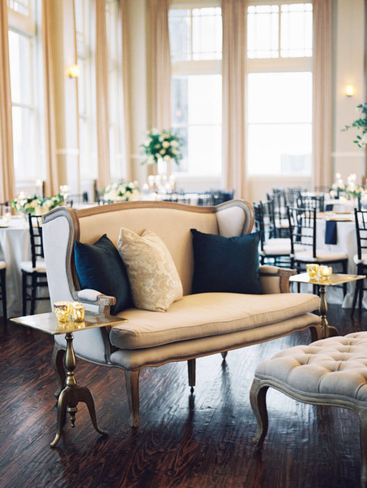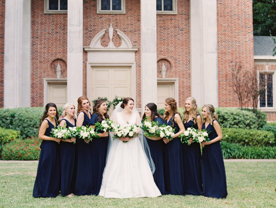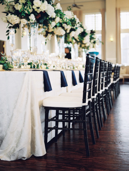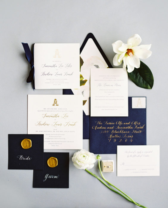 Samantha Liles envisioned a classic, timeless day with a Southern edge that made guests feel “both at home and transported” for her candlelit, navy-and-white wedding to Andrew Frank on November 11, 2017 at The Room on Main. The pair honored their late grandparents—three of whom they had lost in the year leading up to wedding planning—with touching remembrances that included stories of fond memories, photos, a candle, and a flower to represent each grandparent. “It was incredibly special to both of our families and helped us feel like they were there celebrating with us that night,” Samantha says.