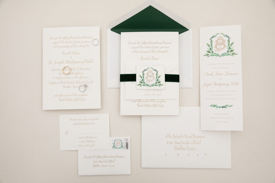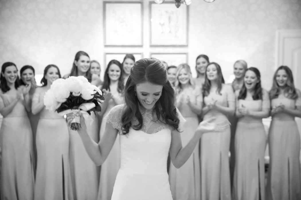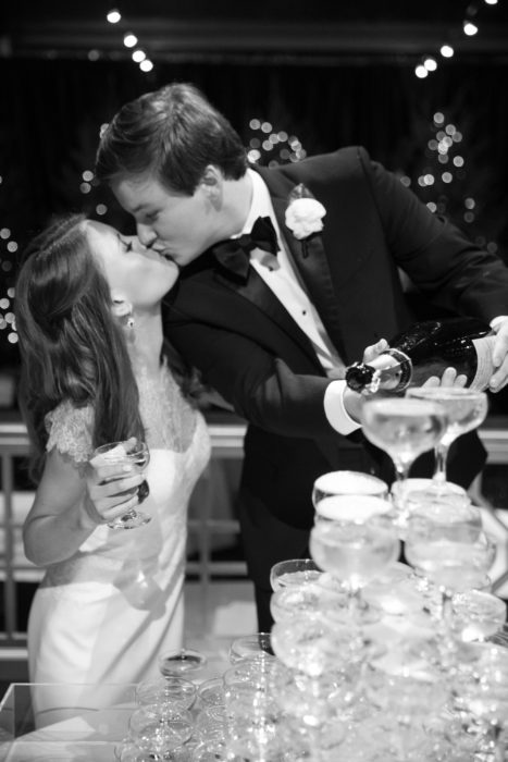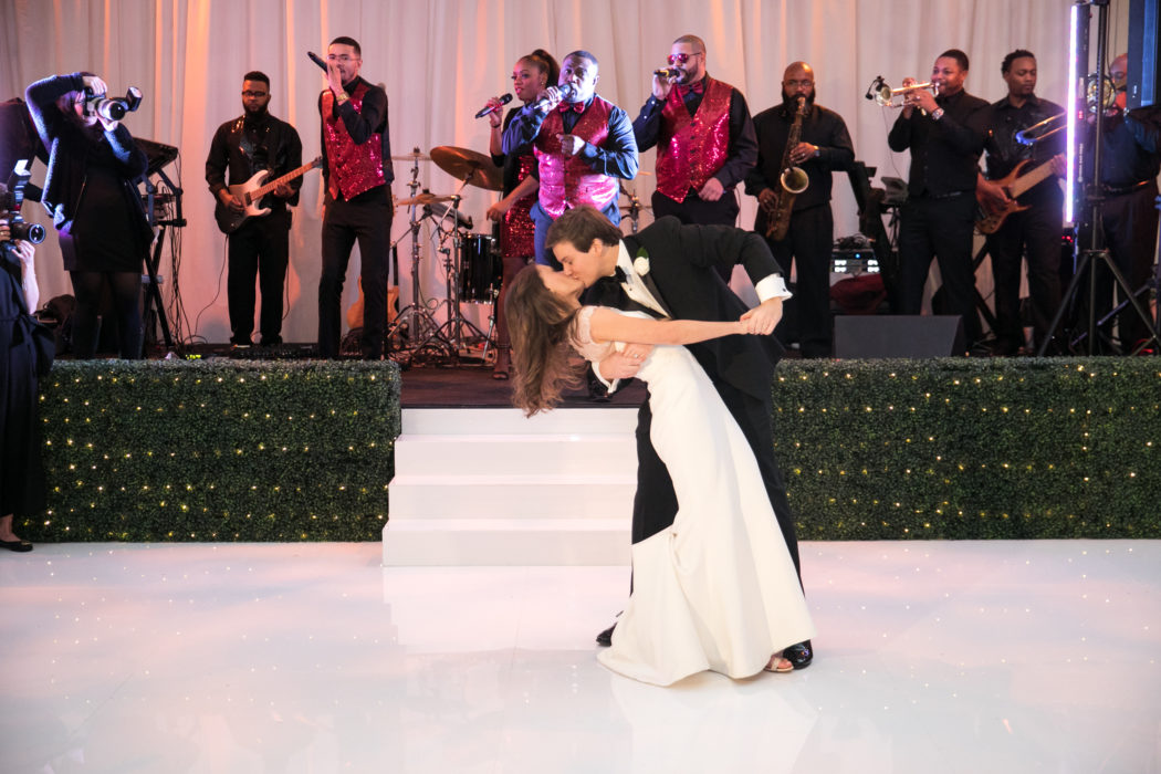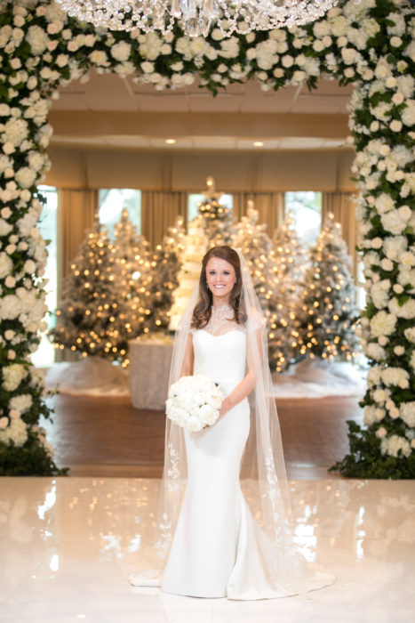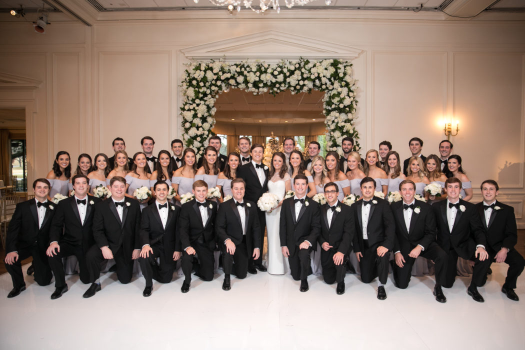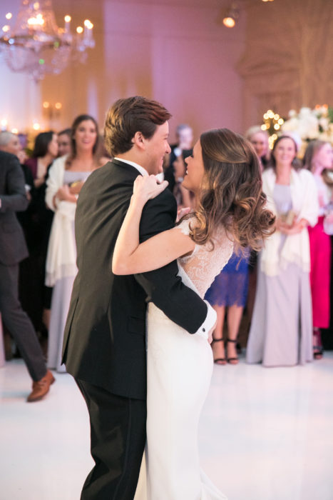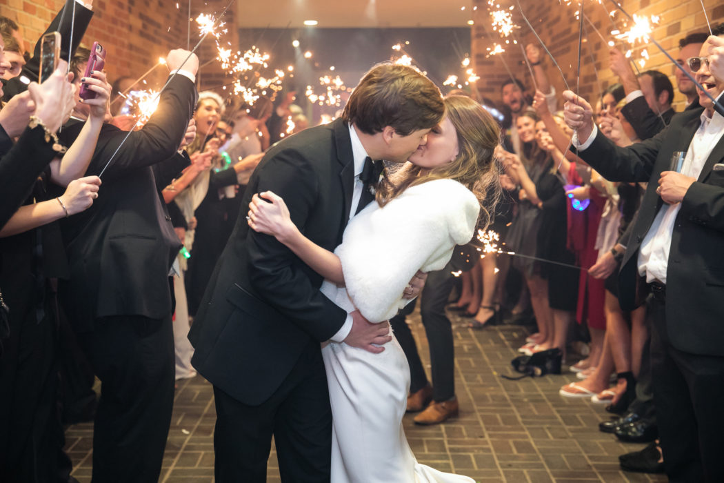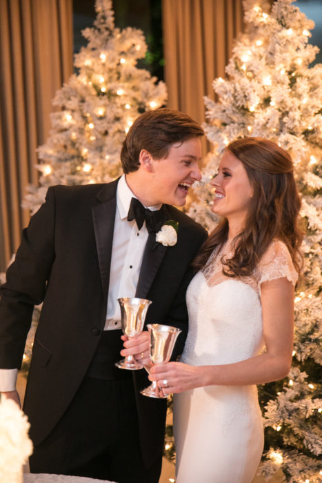“Finding the perfect band was our No. 1 priority because we wanted to spend the night on the dance floor,” Sarah says. Between the walls of Brook Hollow Golf Club, the newlyweds and their loved ones danced the night away among white winter trees and candlelight. To ‘tis the season properly, a stick decorated with mistletoe was passed around the dance floor. “Everyone was kissing their significant others the whole time,” says the bride.