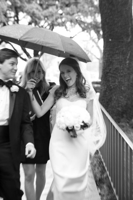 Legend has it that rain on your wedding day is good luck. On December 8, 2018, Sarah Brawner and Joseph White broke out their chic, black umbrellas and put that legend to the test as they prepared to say “I do.”