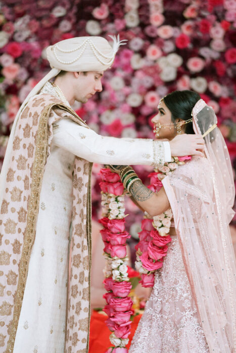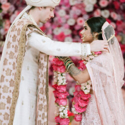Though Vinita Demla and Colt Castner came from different backgrounds, the couple found a perfect way to balance their Hindu and Western–fused wedding. Handcrafted in India, Vinita’s reception dress was a beautiful way to pay homage to her culture.