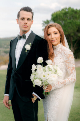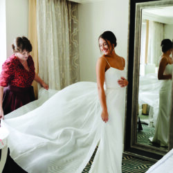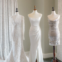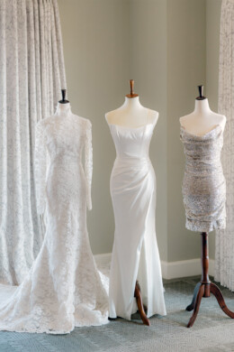 For Alana Newhook, a rehearsal, ceremony and exit dress were all necessary for emphasizing this bride’s special day. “I think every bride should go a bit out of their comfort zone, and a reception dress is such a fun way to do that,” she says.