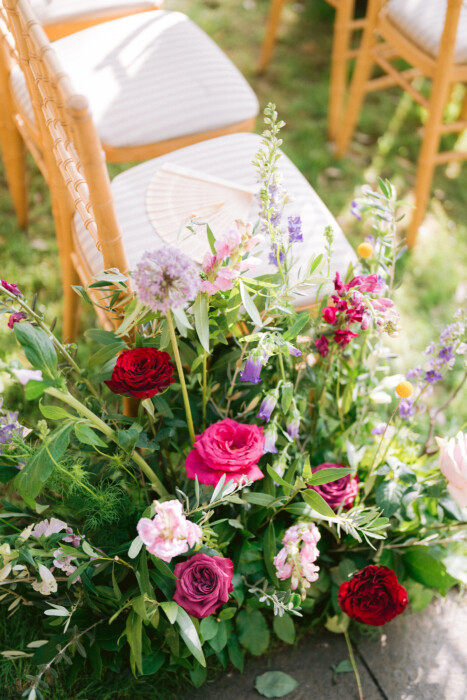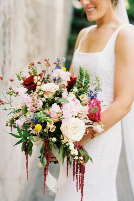 Katie wanted florals that were wild and organic. Admitting to not being the biggest fan of roses, Katie tasked her florist with incorporating the bloom in a way that would add a pop of color instead of being the main focus.