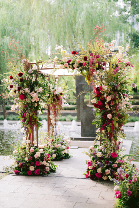 The couple exchanged their vows in front of family and friends under a floral-laden traditional Jewish chuppah, a canopy-like structure that signifies the building of a new home between two people.