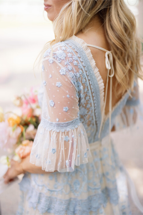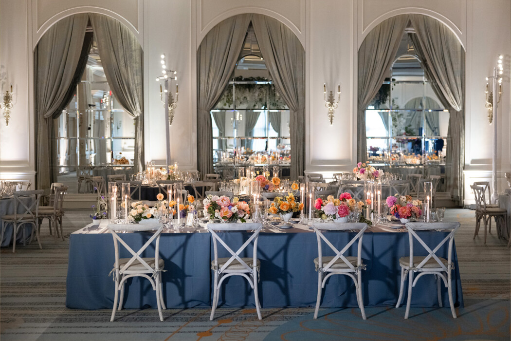 Not everyone realizes they’re in love while exploring Bali by motorcycle, but that’s how it happened for Hannah Novelli and Andy Dolliver. The long-time pals were vacationing with friends after a year teaching English in China, and there was an extra spot on Andy’s bike. “I thought to myself, ‘I wish that were me sitting on the back of his motorcycle,’ ” recalls Hannah of the moment she knew she liked Andy. Though Covid put a pin in their 2020 plans for a 400-person bash at the Four Seasons—they wed instead in an intimate celebration at Hannah’s family lake house in Iowa, which was featured in our Spring/Summer 2021 issue—they were able to revisit Plan A (albeit with a smaller guest count) with a reception on May 8, 2021. “It felt like a sweet celebratory end [to the hardships of Covid],” says Hannah. “I wouldn’t have wanted it any other way.”