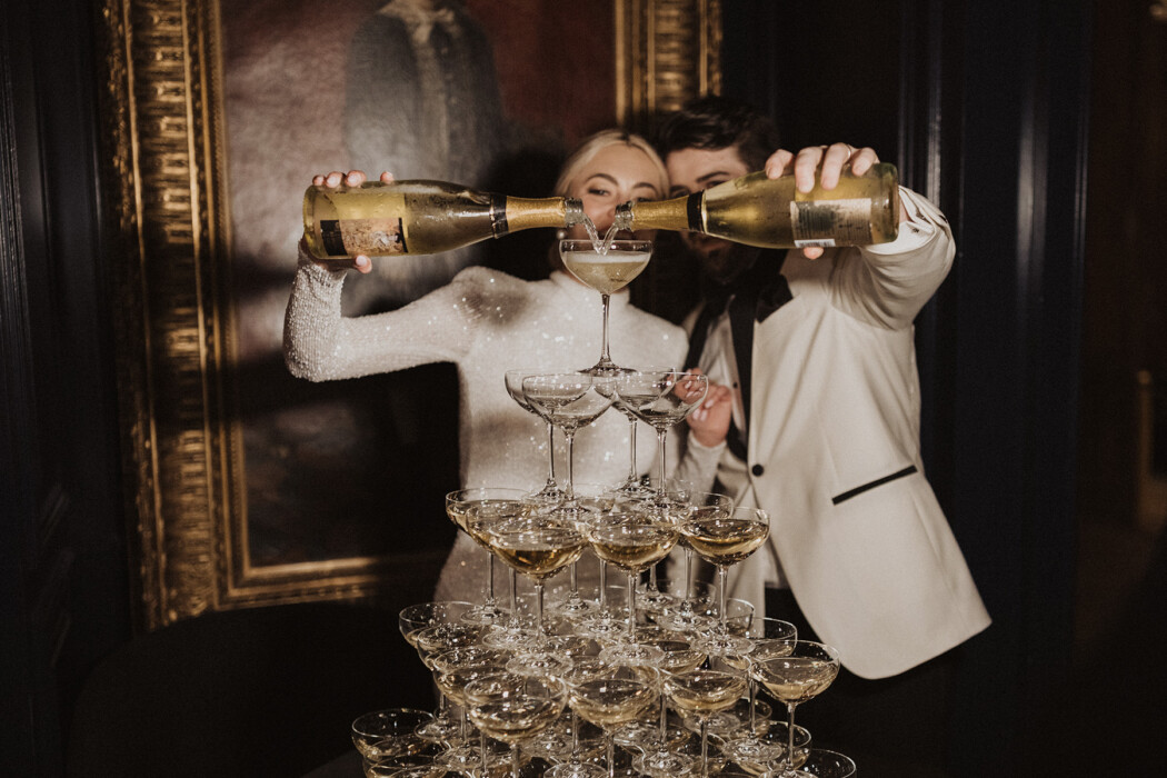 Catherine Edmonson and Jack Hamilton met over a game of ping pong at a bar in Washington, D.C. for a friend’s birthday party. But for Catherine, it felt as though they’d known each other much longer. “We hit it off and had this weird, spiritual connection, like when you meet somebody that you’ve met in a past life,” she says. “I just took a deep breath and was like, ‘Good to see you again.’ ” Though she was dating someone else at the time, she gave Jack her number but blocked his out of guilt. Three months later and newly single, Catherine unblocked his number, and the rest is history. After eight months of dating, the couple got engaged in Florida at Jack’s parents’ house, where her own parents were waiting with balloons and flowers in the backyard. “We just vibe with each other,” she says. “We can sit in a room and be silent and have an entire conversation.”