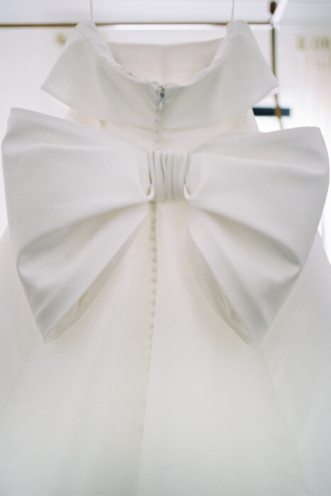 Molly got ready for the day with something borrowed—pearls from her mother’s wedding dress, which she placed on the comb of her veil—and something new—cuffs inspired by her mother’s wedding dress. Her something blue was a pair of Loeffler Randall shoes.