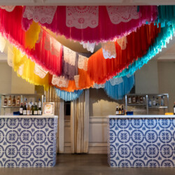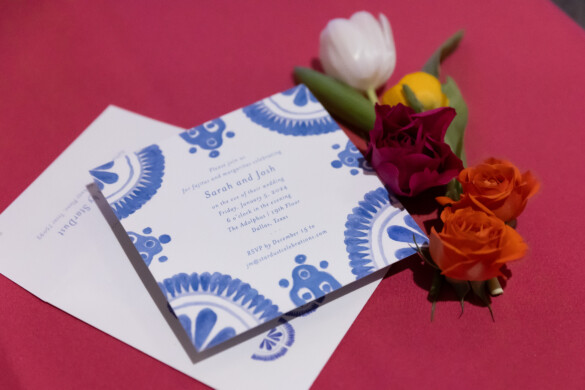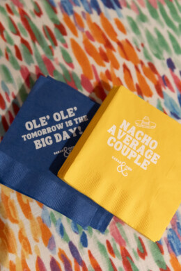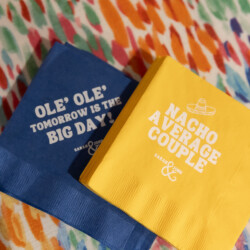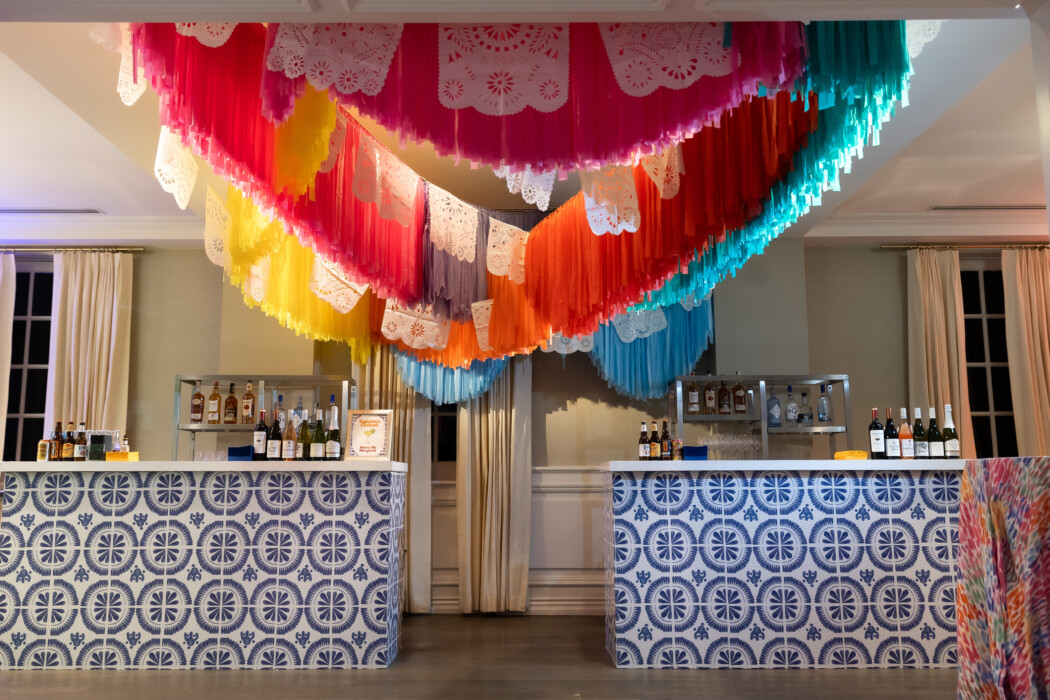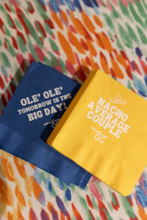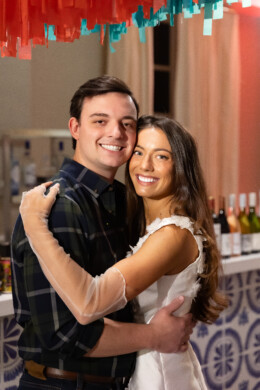 Sarah Staley and Josh Smith’s story started back in junior high school. Who knew after high school, college and first jobs they’d finally tie the knot! And, oh what a wedding weekend it turned out to be. Sarah and her 14 bridesmaids and Josh with his 14 groomsmen checked into the classic Adolphus Hotel on Friday afternoon. The fun began with a FIESTA – complete with a margarita bar, a pinata, Picado flag streamers, and Mexico inspired bright flowers.