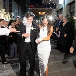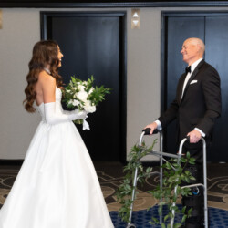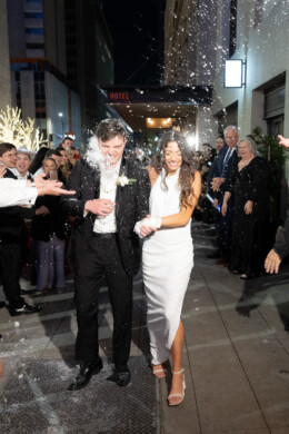 Sarah’s dad had recently been injured in an accident, but that did not keep him from walking down the aisle with his daughter. Family and friends dined, danced, and mingled ‘til the wee hours of the morning, followed by a surprise send off with hand-made snow!