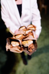 Tanzim: The food was used to bring both sides of the family together. We had poutine to pay homage to Sydney’s Canadian roots. For my side, we made sure all the food was halal so everyone could enjoy whatever they wanted throughout the night. We also had chai and honey butter chicken biscuits to represent my favorite drink and Texas-style food, and for Sydney, we had donuts and coffee. Sadly, the only thing we missed, food-wise, was a few briskets made by me, but I was sadly vetoed.