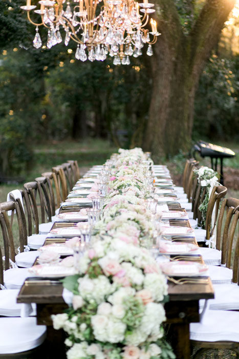 “When talking to Taylor, her biggest thing was getting married under the trees,” Krisi says. “The avenue [of oaks] was three feet under water. We showed up three days before the wedding, and the grass had literally been washed away.”