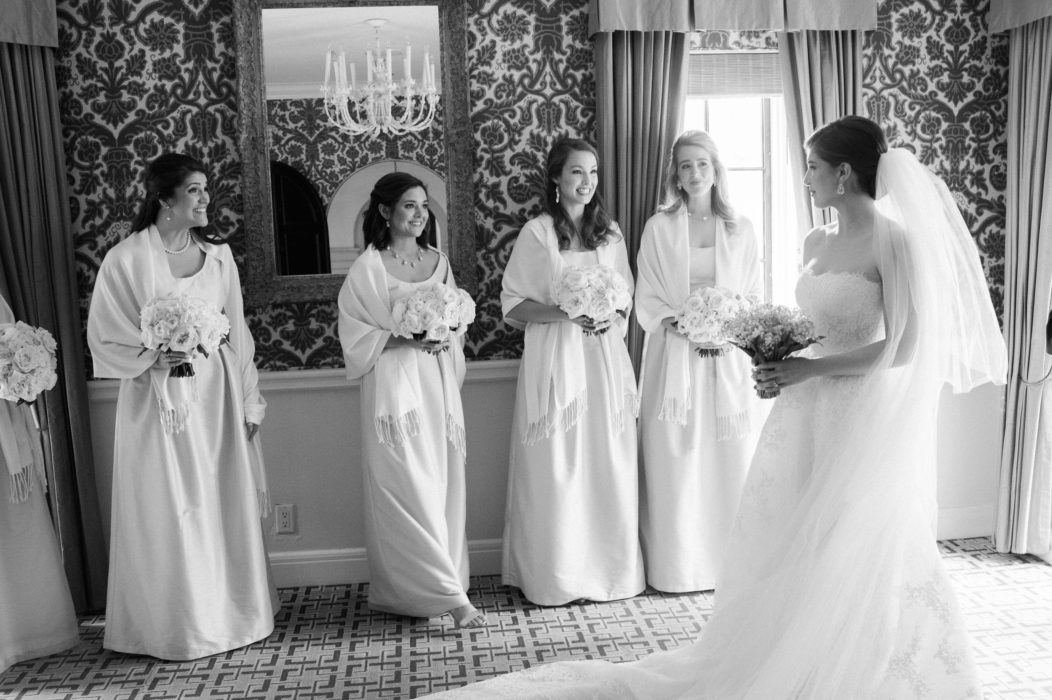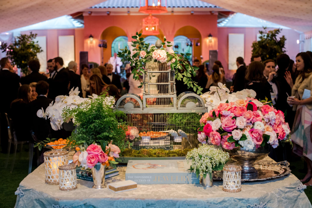 Taylor first found the antique birdcage in an antique store while on a trip in Nantucket. The bride and her wedding planner, Sara Fay Egan, both liked the idea of styling the wedding more like a home. So when it came time to plan, the birdcage was incorporated—complete with two live lovebirds—on a quatrefoil entry table.