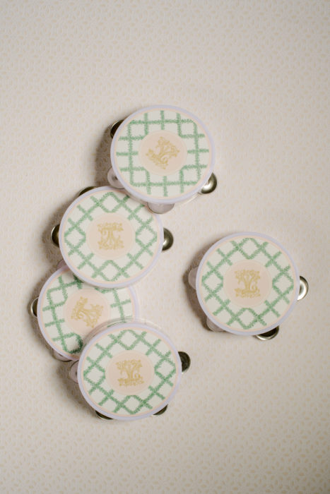 so tambourines were designed with Holly Hollon’s help. Dixie Design Collective did the welcome bag paper with the same lattice design.