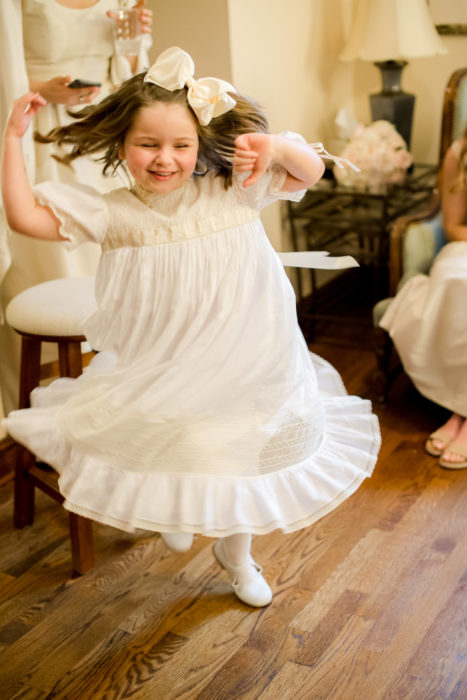 “That precious girl is someone who loves being Southern and [having] beautiful things,” says Taylor. “[Her dress] came in two weeks before the wedding. It’s an heirloom lace dress that she’ll be able to have forever.”