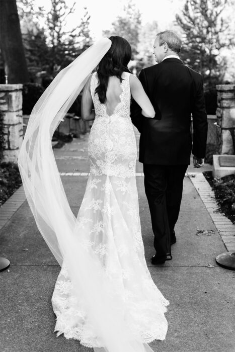Amanda McLachlan had long thought pal Nathan Jones was “dreamy.” But it wasn’t until a confession of love by Nathan that the two went from friends to something more. Two years later, Nathan took Amanda on a scavenger hunt through special shared spots in Dallas, ending in a proposal. For Amanda, an event planner by trade, planning her wedding “was like my Super Bowl.” She quickly got to work bringing her vision to life with the help of planner Leslie Ochs of Alice and Apricot, and after a four-month engagement, Amanda and Nathan tied the knot in front of 70 of their nearest and dearest. Remembers the bride: “We felt super blessed to have a night under the stars with all our close friends and family.”