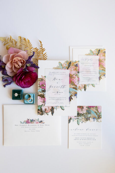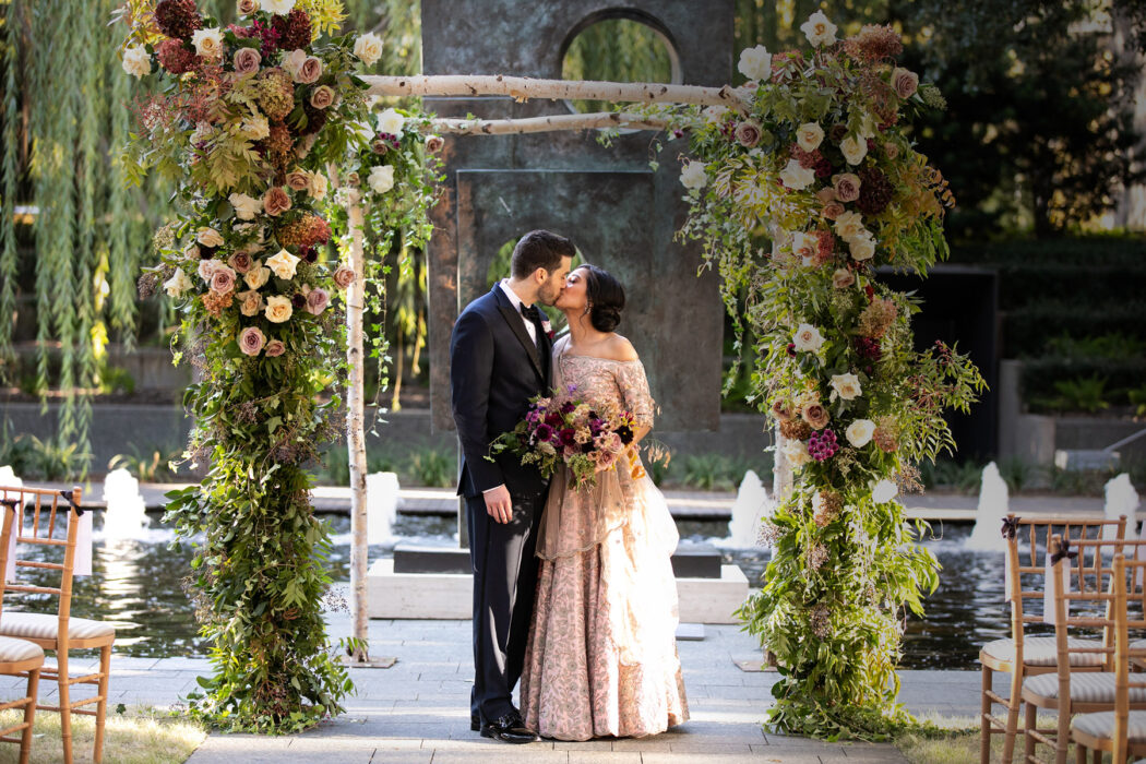 When Nemi Shah and Garrett Blumberg became friends at Georgetown University School of Medicine, what was most apparent was how much they had in common. Yet for all their similarities, when it came time to plan their wedding four years later, the honorable blending of their differences—Nemi is of Indian descent and Garrett is Jewish—was a top priority. Hailing from Florida (her) and California (him), they decided to marry in Dallas, where they’d couples-matched for residency and began their life together. “The one thing I had always wanted for my wedding was to be outside, with good friends and good wine,” says Nemi, who imagined an intimate secret garden amid the Nasher Sculpture Center’s lush surrounds. After a November 2, 2019, ceremony that combined the best parts from both their cultures, guests dined on Indian fusion fare and boogied to the Emerald City Band. And while work often has them going in opposite directions, it’s where the medically minded pair are going together—next stop, San Diego!—that counts.