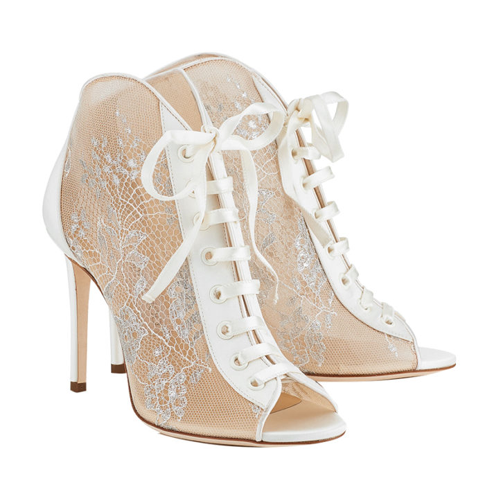 Romantic “Freya 100” white lace booties ($1,050/Jimmy Choo)