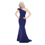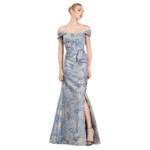 “One-shoulder silhouettes continue to be popular, but we’re also seeing more clients choosing strapless gowns than in the past. Florals and jacquards are also still in demand.”