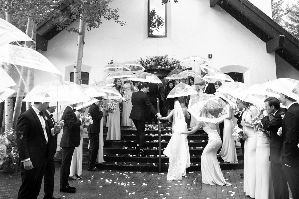 Yagmur Duman and Will Griffin’s Vail, Colorado, nuptials were sprinkled with good luck when a storm popped up at the start of their ceremony. Unable to wait the rain out due to their chapel’s tight schedule, the nearlyweds said “I do,” then ventured out into the downpour for their petal toss. Thankfully, their planner, Karli Spangler of Karli Spangler Events, had clear bubble umbrellas on hand, which their wedding party used to create a makeshift tent. While the bride’s wedding gown and shoes were soaked through by the end, she thankfully had a reception outfit at the ready. Yagmur credits her vendor team for the easy transition to the backup plan. “Given that the rain was so brief, I don’t think any of our guests noticed the switch,” she says. “It all came about so seamlessly.” —photo by John Cain Photography