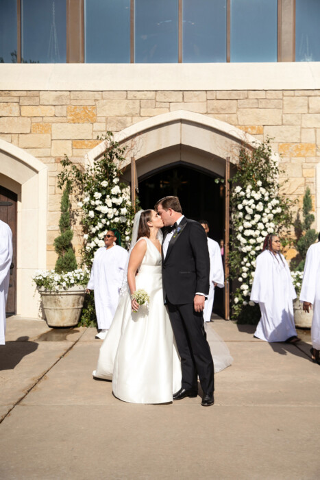 The bride’s cousin can take a lot of credit for how Peyton Bivins and Trey Sidwell ended up together—the beloved family member had been best friends with Trey since childhood. When fate brought Peyton and Trey back to their hometown of Amarillo as adults, it was Peyton’s cousin who set them up on their first date. Five years later, the whole family was gathered at their ranch for a birthday party when Trey took Peyton out onto the balcony and proposed. “He’s just very caring and always supportive,” the bride says. “We’re each other’s people.” Following a honeymoon in Bora Bora, the pair have settled into married life with their dogs, Weezy and Olivia.