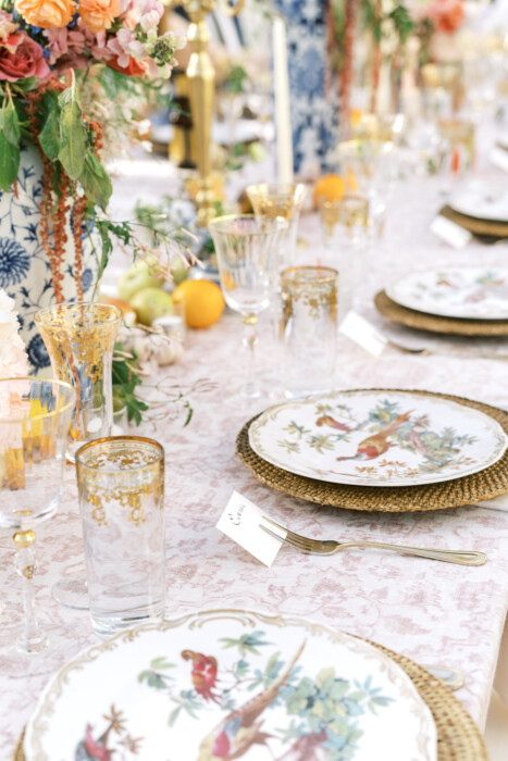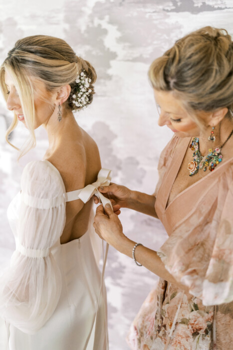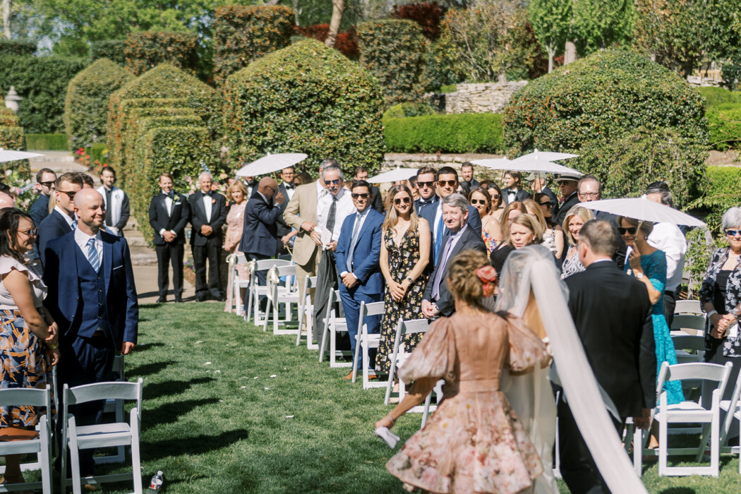 Twyla entrusted Dr Delphinium to create a unique flowerscape— featuring jasmine vine, ranunculus, lavender lilac, and hydrangea—that would capture her wedding style. “I wanted [our wedding] to feel like a timeless fairytale, to be vintage inspired without being eclectic or messy,” says Twyla. The team at Dr Delphinium designed a lush English countryside vibe enhanced with delicate blooms for a “plucked from the estate garden” feel.