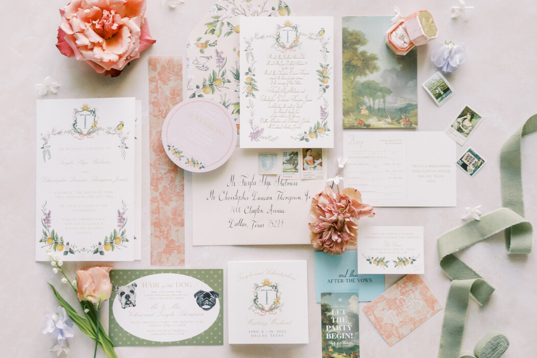 Twyla Shelmire’s and Chris Thompson’s paths should’ve crossed a million times. They grew up in Dallas, attended brother/sister private schools, ventured to New York City in their 20s, and moved back to Dallas a few years later. But it wasn’t until a mutual friend set them up long after they had returned to Texas that they first met. The connection was immediate. Many dates, countless memories, and a move-in later, Chris popped the question in the couple’s dining room before taking Twyla out to celebrate with friends and family. “Chris and I have the same values, we travel the same, we like to live in the same way,” says Twyla. “Everything just aligned and felt very meant to be.”