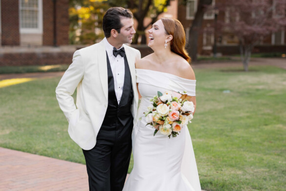 Wedding designer and florist Katy Roden was well-versed in the world of weddings even before Landon Tujague, her boyfriend of a year, proposed while on a ski trip in Vail, Colorado. But the experience of planning her own nuptials still proved eye-opening. “As a bride, you have so much pressure and opinions coming at you. And goodness—the amount of bills to keep up with!” says Katy, who serves as the director of company relations and operations at Branching Out Events. “It is so much to balance, and you don’t know it until you experience it!” The bride worked with her vendor team, led by planner Meaghan Cody of Sweet Pea Events, to achieve the “warm, inviting, and high-energy” wedding of her dreams. In the end, the day was everything she could’ve imagined. “It’s absolutely true when anyone tells you it’s one of the best days of your life,” she says. Following their honeymoon in Saint Lucia, the couple have enjoyed settling into their new house in Far North Dallas with their dogs, Hilde and Umphrey. They reflect on the splurges, surprises, and stressors of wedding planning.