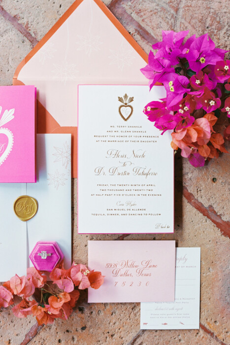 It was lucky for Dusty Taliaferro that Alexis Shankle was in her “not saying no” era when he messaged her on Instagram. After agreeing to a date, they were inseparable. Dusty proposed by “popping out of a bush” at the Arboretum, and the pair planned a long engagement while Dusty finished school. The couple finally said their vows at the dreamy Casa Hyder in San Miguel de Allende, Mexico. They planned a fun-filled weekend in homage to the city’s vibrant colors, lively atmosphere, and abundance of tequila. Benito the donkey greeted guests, mariachis played, papier-mâché mojigangas danced, and of course tequila was the drink of choice. “The night felt like we were in our own fairy-tale garden,” Alexis says. “I thought, ‘I never want to leave this place.’ ” —Ryan Conner