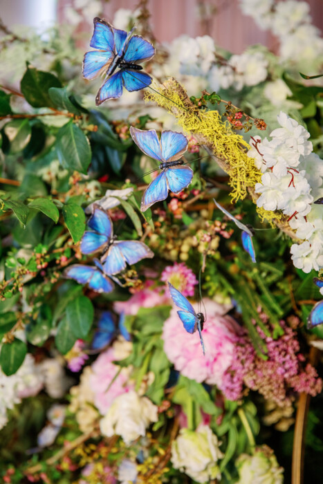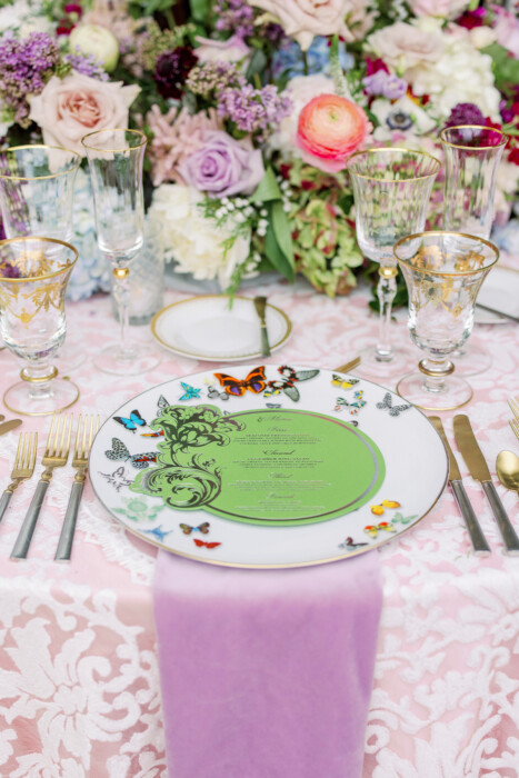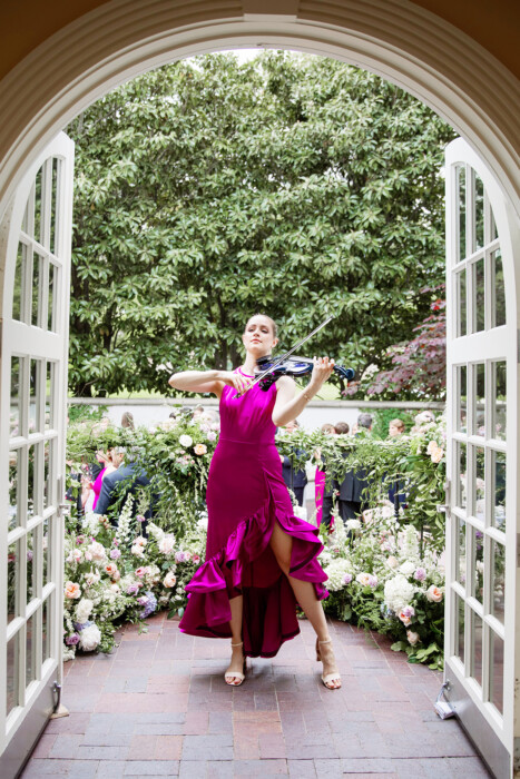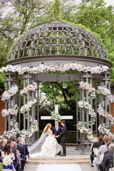 Having been torn between Arlington Hall’s pavilion and the sunken garden, the pair ultimately chose the pavilion for their “I do’s.” “It’s just a natural place to have a ceremony,” says Ciara. “We didn’t want to change the space entirely but just add to it.” The couple also wanted to represent their Christian faith in the service.