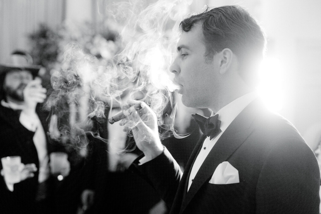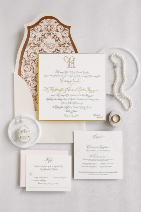 It was a studious start for Ciara Cooley and Huntington Biggers—the pair met while she was getting her MBA at SMU, and he was in law school there. “My roommate went to high school with him,” the bride explains. “I came home one day and he was there, and I was like, ‘Who is that?’ ” Nearly two years later, a rescheduled tea reservation at The Ritz-Carlton tea room proved the perfect proposal spot, with their families just in the other room. The couple knew they wanted an outdoor wedding, so they booked Arlington Hall for April and crossed their fingers for good weather—and lucked out.