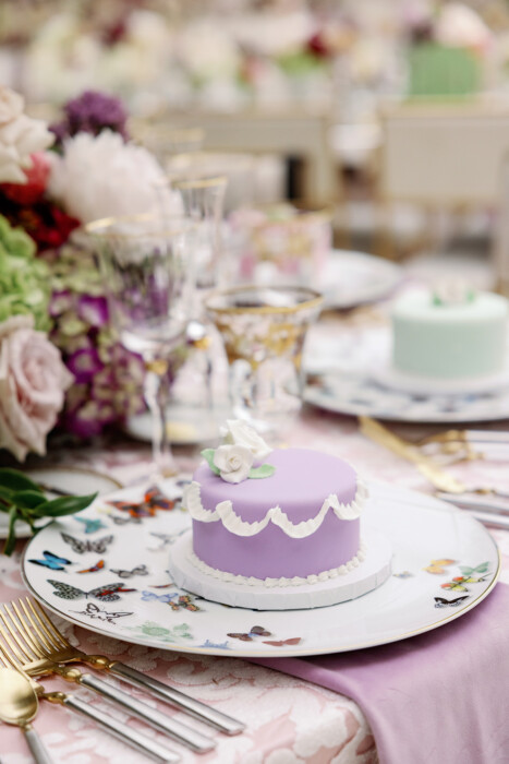 Cake Flavor: Champagne cake with mixed berry mousse, mixed berry puree, and vanilla buttercream frosting
