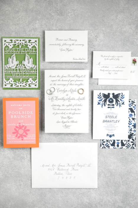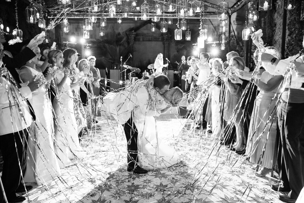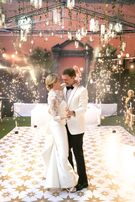 Steele Padgitt and Brantley Smith grew up a mere five blocks away from one another in Dallas. So when Brantley popped the question, Steele said yes and immediately began looking for a venue far beyond the city limits. “I wanted something different—more intimate and more my personality,” she says. San Miguel de Allende, Mexico, was the natural choice, as Steele fondly remembered seeing wedding parades marching down the streets there when she was a kid. To that end, the couple brought their own adoring cavalcade from Dallas—family and friends, along with a makeup artist, band, and photographer—and made sure their procession came with pyrotechnics. “During our first dance, sparklers erupted from the ground, and everyone was cheering for us,” Steele says. “It was truly magical.”