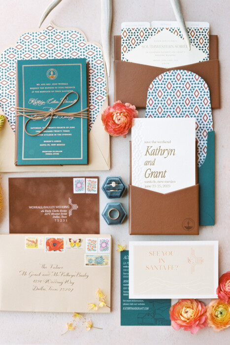 But in this case, coffee turned into dinner and drinks, and three dates later, the duo went from LinkedIn to linked up. After getting through school and a stint of long-distance dating, Grant planned a surprise proposal in Santa Fe, New Mexico, that involved dummy plane tickets, fake cat-sitting plans, and collusion with his bride-to-be’s parents. Kathryn figured it out but was totally on board, and plans for a wedding in the Land of Enchantment began in earnest. “I always knew I wanted to get married in Santa Fe, and Bishop’s Lodge was a no-brainer. My family has been going there for decades, so I have so many sweet memories there,” Kathryn says.