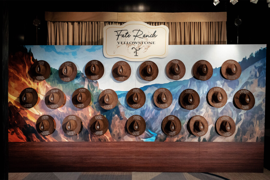 The Yellowstone-themed seating chart, complete with guests’ names and table numbers hand-painted on cowboy hats, was a nod to the fated evening Payton and Grant first met.