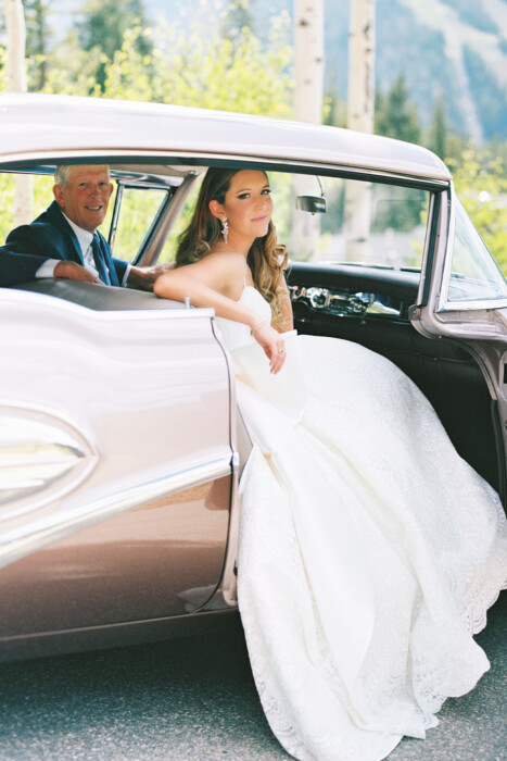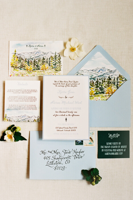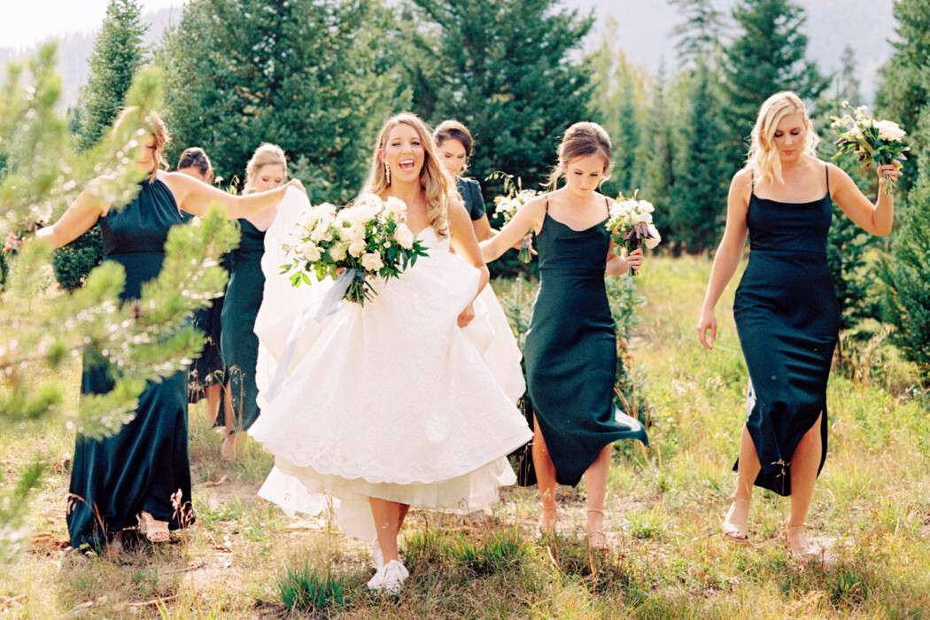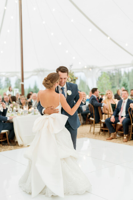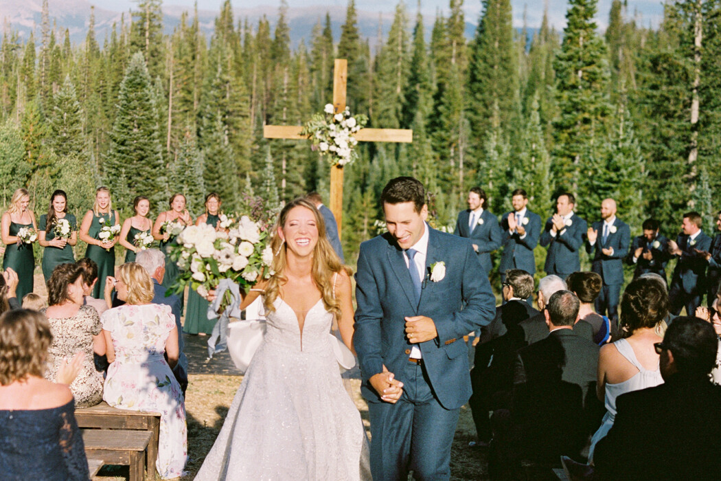 A bad case of nerves almost ended Karri Kugler and Aaron West’s love story before it even began. “I had butterflies from the moment we met,” says Karri. “We danced, and I bolted the minute the song was over. Later, he asked for my number, and I ran away again!” Still, Aaron persevered, Karri found her chill, and the pair became (almost) inseparable, enduring three years of long-distance dating while attending different schools. For their big day, Karri knew she wanted to wed on her parents’ 35-acre property near Winter Park, Colorado, blending nature and glamour. “The day was the perfect representation of who we are. We love the outdoors, and also things that are fancy and nice,” Karri says. “I wore sneakers with my ball gown.”