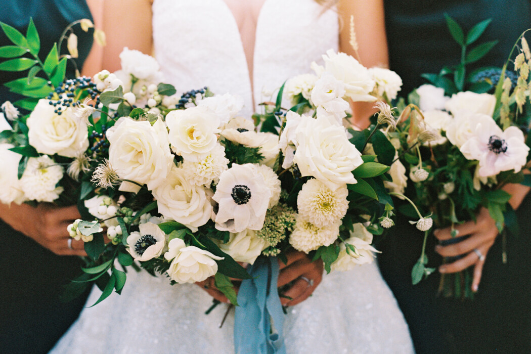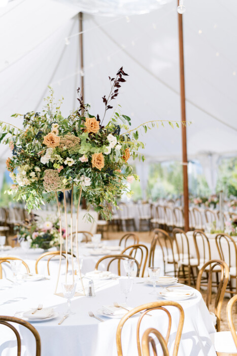 The bride wanted arrangements that were elegant but also looked like flowers that could have been plucked fresh from the landscape. “But I didn’t want them to look rustic,” she says. ”Even though I wanted a rugged setting, I’m not a ‘rustic’ girl.”