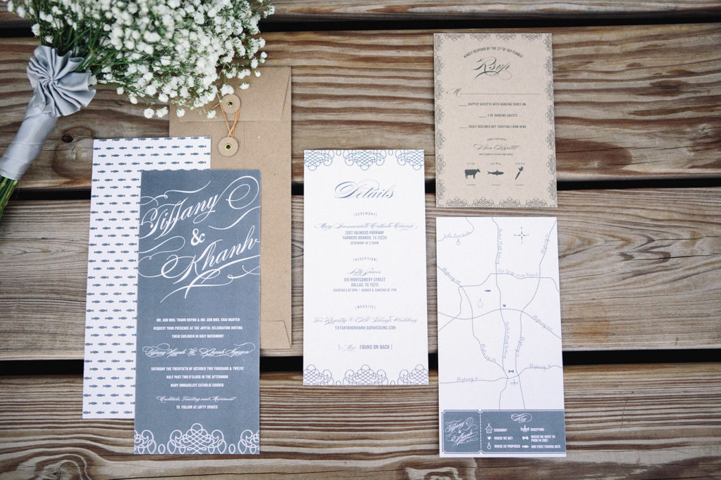 An after-school job at Banana Republic brought Tiffany Huynh and Khanh Nguyen together during their senior year of high school. Though the teens started out as just friends, they soon began dating, and nine years later Khanh proposed waterside, calling his bride-to-be “the catch of my life” before reeling her in. On October 20, 2012, they said “I do” in the church they’d both grown up in. A fishing-themed reception—complete with a rowboat—at Lofty Spaces near downtown followed.