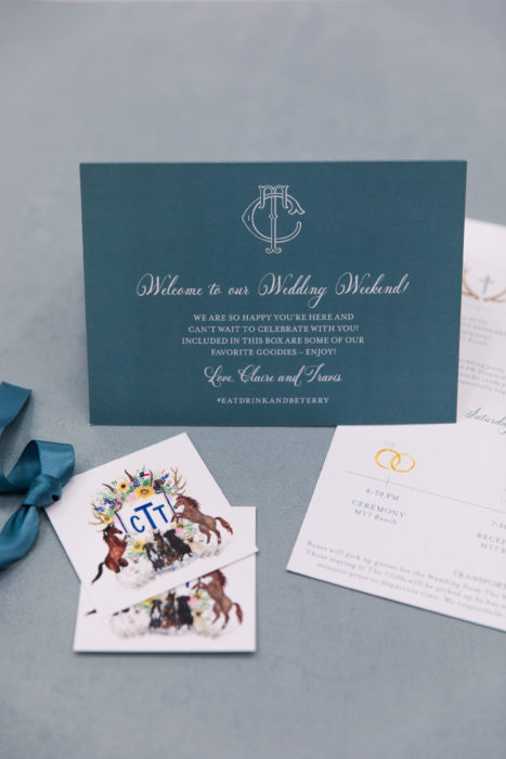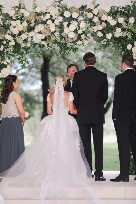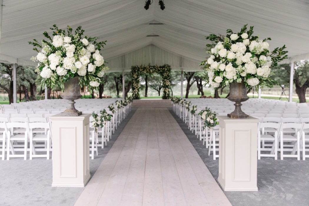 After such a memorable proposal, getting married at the ranch—their favorite place—was an easy decision for Claire and Travis. However, Claire says that along with including ranch-inspired decor into their day, she also wanted to incorporate details like ginger jars and white flowers.