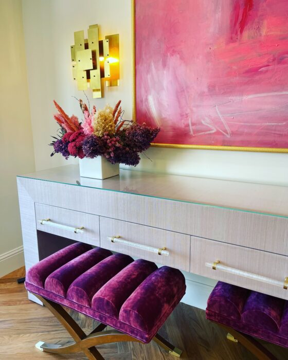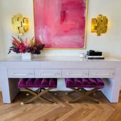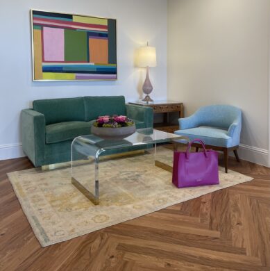 Elle Warren Harman: We wanted to create a space that was beautiful. There aren’t many alterations studios that are pretty. We wanted a beautiful environment for people to do their alterations—not only the wedding gowns, but the mother of the bride, the bridesmaids, even the dads. When I decided to move the bridal shop to this shopping center, this space was open, so we sort of just did it.