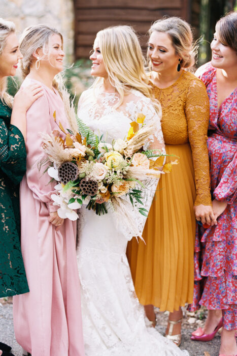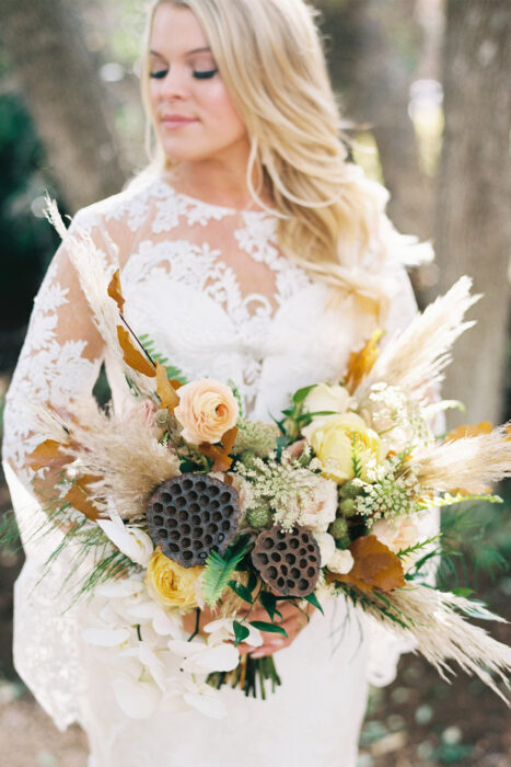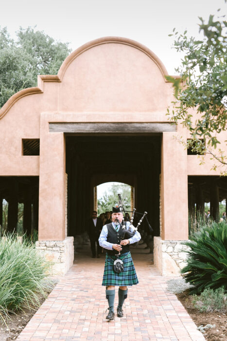 Meagan Bechtel wanted her wedding to Zack Starr to feel more like an “incredible dinner party” than a wedding. The adventurous couple met online, and as Meagan remembers, “It was very clear from our first date that we were meant to be together.” As a hair and makeup artist in Dallas-Fort Worth, Meagan has seen a beautiful wedding at almost every venue in town. Wanting something different for her own celebration, she and Zack decided to venture south for their big day: to Camp Lucy in Dripping Springs. She opted out of a traditional wedding party, bouquet toss, and cake cutting in favor of less traditional elements, like Meagan’s father marrying the couple rather than walking the bride down the aisle and a blessing ceremony of the couple’s rings. The wedding weekend also included bouldering and a tailgate as pre-wedding festivities. Looking back, Meagan says that, for them, bucking tradition paid off. “The wedding that we had was exactly right for us.”