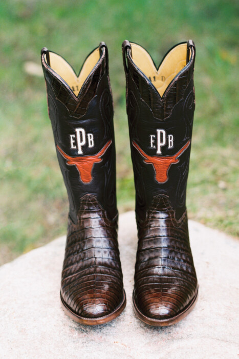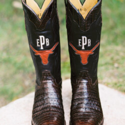 For Lauren Mish and Ryan Trimble’s big day at White Rock Lake, they both decided to wear boots—each pair perfectly matched to their respective owners wedding day ensemble. Isabel Miller had a custom pair of boots made for her groom, Eric Pryzant, who wears boots everywhere from “football games to black-tie events.”